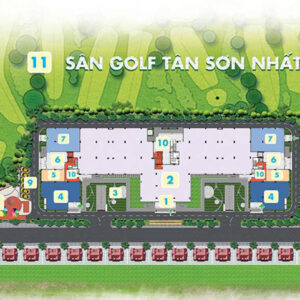1. Sảnh thương mại | 2. Khu thương mại | 3. Công viên nội khu | 4. Khu dịch vụ | 5. Sảnh quản lý dự án | 6. Sảnh chung cư | 7. Khu làm việc cộng đồng | Khu vui chơi trẻ em | 9. Bãi đậu xe hơi | 10. Khu kỹ thuật | 11. Sân golf Tân Sơn Nhất