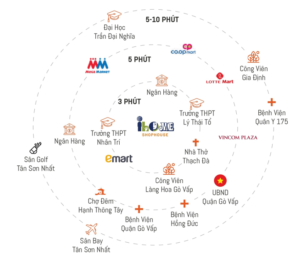 Trong bán kính 5-10 phút di chuyển quý khách dễ dàng đến các dịch vụ vui chơi giải trí, trường học, chợ, dịch vụ chăm sóc sức khỏe, công viên…
