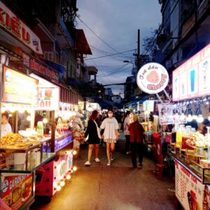 Tại không gian Saigon Garden, bạn sẽ vô cùng bất ngờ khi nhận ra những dãy phố Châu Âu ngay giữa đại lộ Nguyễn Huệ. Bên trên dãy phố này có rất nhiều chuỗi nhà hàng quán ăn, cửa hàng bán hoa tươi, cửa hàng quần áo vào cửa hàng bán quà lưu niệm handmade..